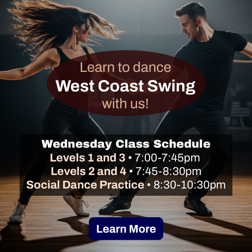 Whether you’re learning your first sugar push or refining anchor steps, West Coast Swing is the perfect mix of cool, connection, and creativity.