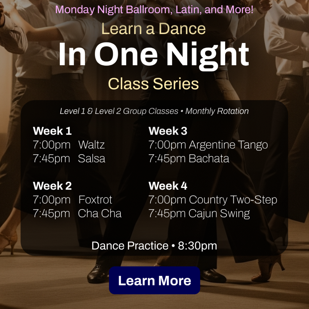 Learn, connect, and have fun—beginner-friendly classes every week + social dances.